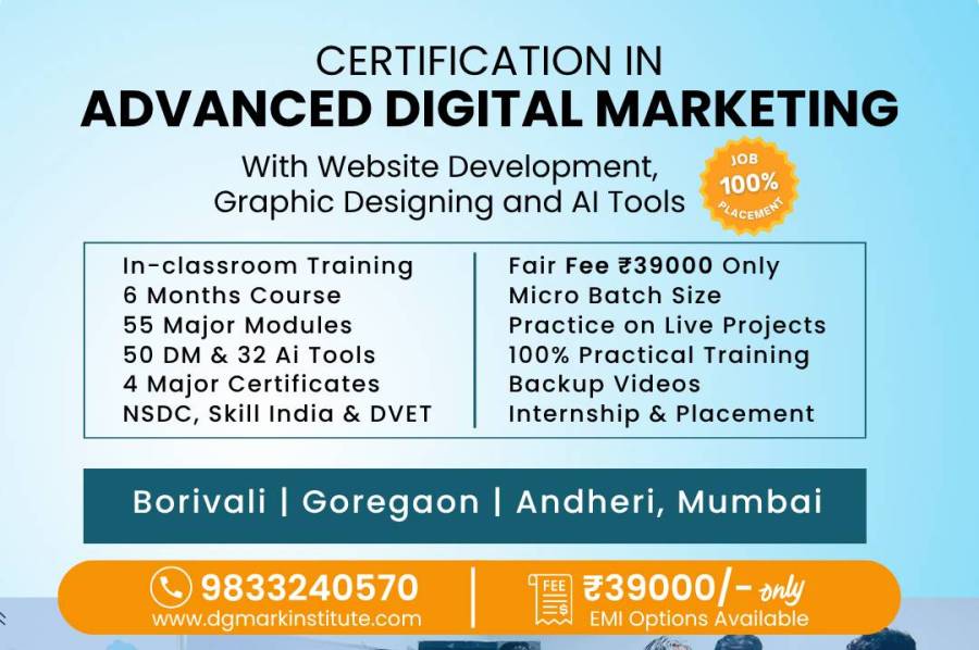 DGmark Institute offers industry-focused digital marketing courses in Borivali designed to provide practical, job-ready skills aligned with current market demands. The program emphasizes hands-on training with live projects and real campaign execution to help learners gain confidence and practical exposure. The curriculum covers SEO, Google Ads, performance marketing, social media marketing, content strategy, website planning, AI tools, automation, and analytics.